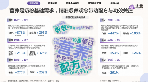 十年间,中国母婴市场的消费逻辑从 “满足刚需” 转向 “科学精细”,中心的研究轨迹始终也是与家庭需求同频。艺恩数据显示,当代父母对母婴产品的决策中,41%聚焦配方成分,25%关注功效特性,这种专业化追求正源于科学营养、实证研究的普及。