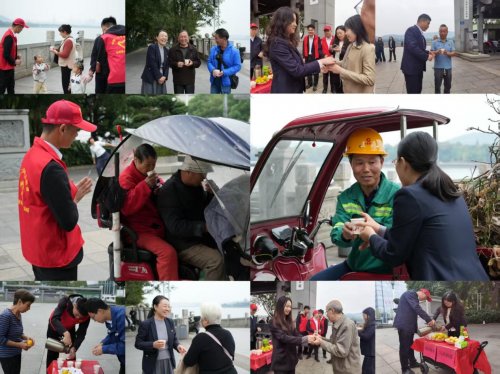 暖茶供应点前,党员志愿者们分工明确,有人负责维持茶水倒茶;有人主动上前询问老人需求,“爷爷,您是喜欢喝淡一点的茶,还是浓一点的?”“奶奶,小心烫,我帮您端到那边的座位上吧!”78岁的李奶奶刚坐下,志愿者便递上一杯热气腾腾的茉莉花茶,“姑娘,你们真是太贴心了,这茶喝着心里都暖和。”李奶奶笑着说,她每天都会来湘江边散步,今天看到这么多穿着红马甲的党员,还能免费喝茶、拍照,心里特别高兴。
