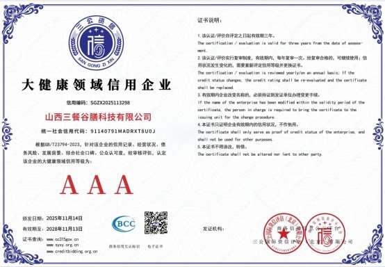 山西三餐谷膳科技有限公司成立于2024年,从祖上的太医到传承中医的父亲,幸不辱使命在护佑健康的道路上一直砥砺前行,经过二十多年的潜心研发与十几年的市场探索,遵循“民以食为天”原则,精心打造膳食同源粥、膳食同源谷饮和八大系列产品。