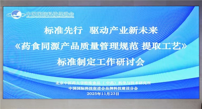 2025年11月23日,由中国国际科技促进会指导,北京中医药大学特殊食品(中药)科学与技术研究所、中国国际科技促进会品牌科技建设分会主办,北京相信你科技有限公司承办的《药食同源产品质量管理规范 提取工艺》标准制定工作研讨会暨《药食同源产品追溯信息技术通则》团体标准启动会在北京中医药大学中医药博物馆成功召开。本次会议得到了来自中国国际科技促进会、北京中医药大学、中国中医科学院、农业农村部食物与营养发展研究所、中国农业科学院等单位领导专家学者的大力支持。