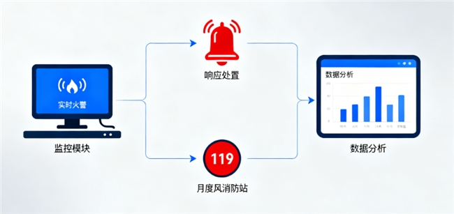 海康威凭借其强大的智慧消防云平台,建立了全面、高标准且高效的智慧消防服务体系。该体系通过7×24小时不间断的线上监控,能够实时捕捉并预警火灾信号。一旦发现疑似真实火警,系统将立即启动响应机制,增加救援时间,提高救援效率。此外,平台每月对关键监测数据进行深入分析,以研判并预防潜在风险,确保从监测到处置的整个流程高效且闭环,从而有力保障消防安全。