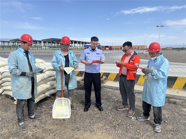 民警定期走进企业,开展法制宣传教育和安全培训,内容涵盖防范电信网络诈骗、保护商业秘密、安全生产法规、出入境管理规定等,提升企业员工的法律意识和安全素养。通过以案说法,警示风险,引导企业依法经营、规范管理,从源头上预防各类案件和安全事故的发生。“民警讲的案例都很生动,让我们深刻认识到法律的重要性。现在遇到一些法律问题,我们第一时间就会想到向民警咨询。”阿拉山口金牧生物科技有限公司的一名员工说道。