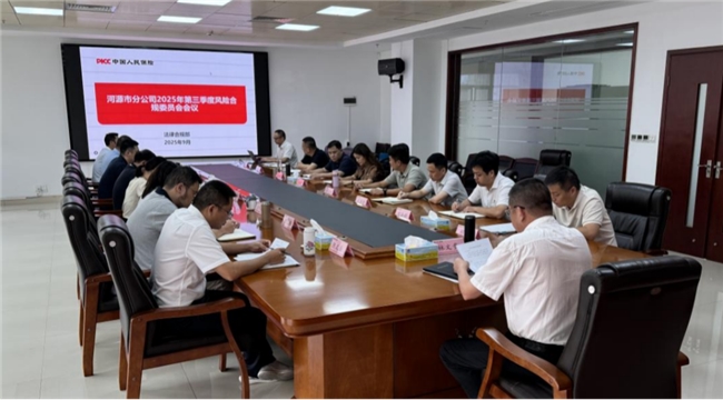 9月15日,中国人保财险河源市分公司党委书记、总经理、风险合规委员会主任主持召开2025年第三季度风险合规委员会会议,市分公司风险合规委员会全体成员参加会议。